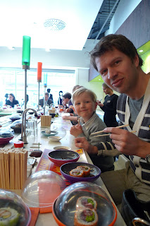…og lykken er fullkommen når favorittbitene kan plukkes fra rullebånd…