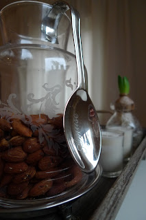 Ristede mandler… …lukter deiligi hele huset og smakerkjempegodt!!! Ristes på stekebretti ovnen 200 graderca 20 minutter Nydelig nøtteskje frajulebutikken Lene Interiør,perfekt vertinnegave!!!